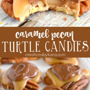 This turtle recipe is perfect for holiday gift giving, but seriously, homemade turtle candy with pecans and caramel is going to be well received any time of year!