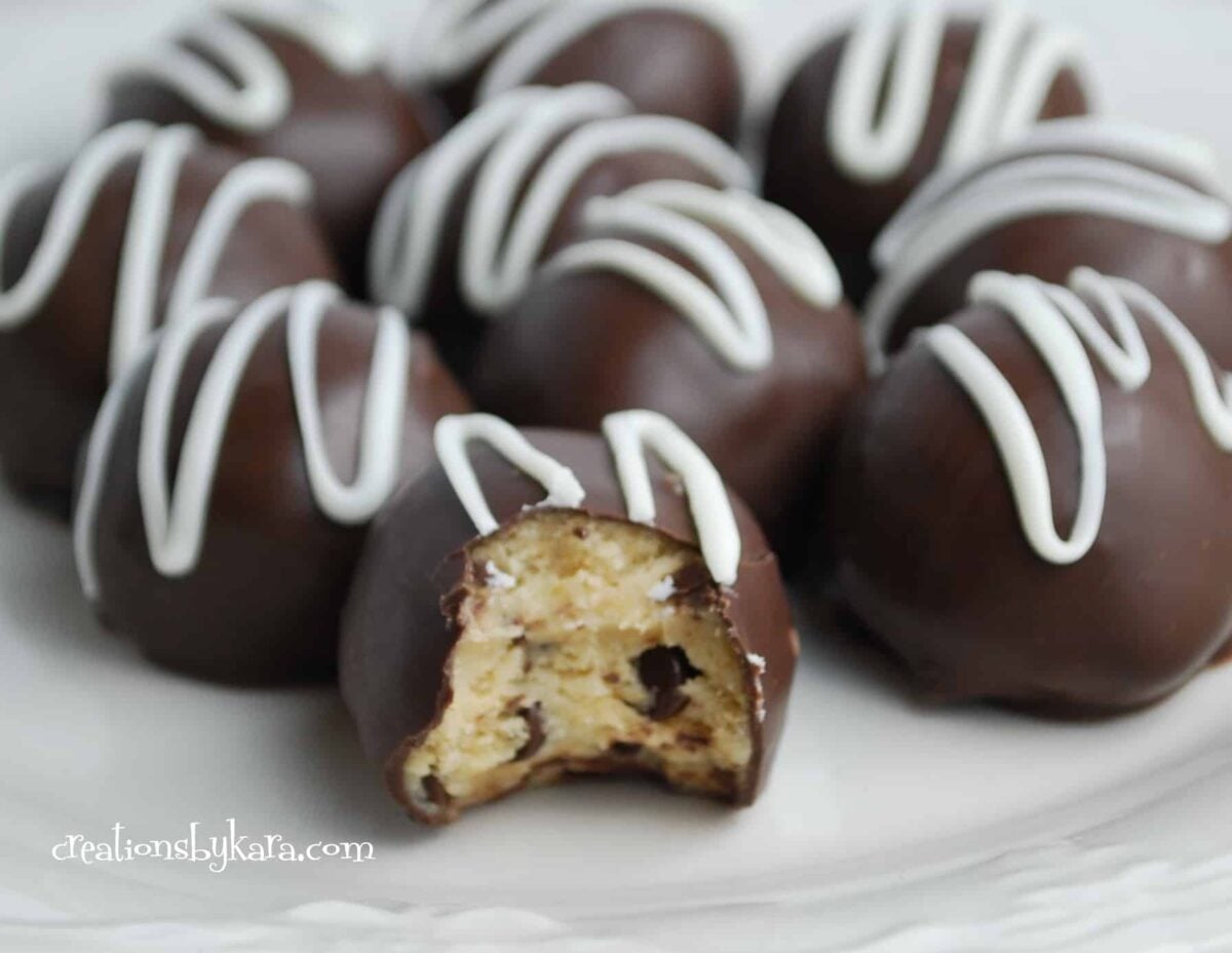 I will admit that I am not one that gets the heebie jeebies eating raw cookie dough. At least not in small quantities. But for this truffle recipe I wanted to make a cookie dough that did not contain eggs. I got my inspiration from these Chocolate Chip Cookies.
