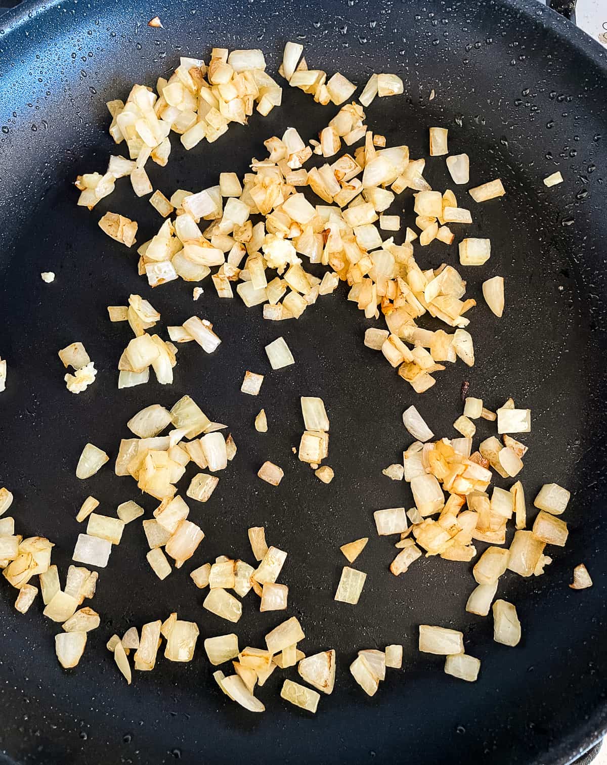 - ONIONS – Turn the stove to medium heat and add the onions to the same pan. Saute until browned and tender. Add the fresh garlic for the last minute of cooking time.
