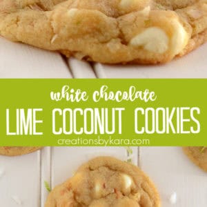 Coconut Lime White Chocolate Cookies- These soft and chewy cookies are loaded with white chocolate and toasted coconut, and they have just a hint of lime. A perfect spring cookie recipe!