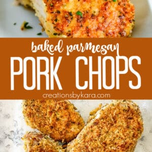 These are similar, but have an Italian flair. And lots more Parmesan cheese, which I love! It gives the pork chops a really flavorful crunchy crust. So yummy!