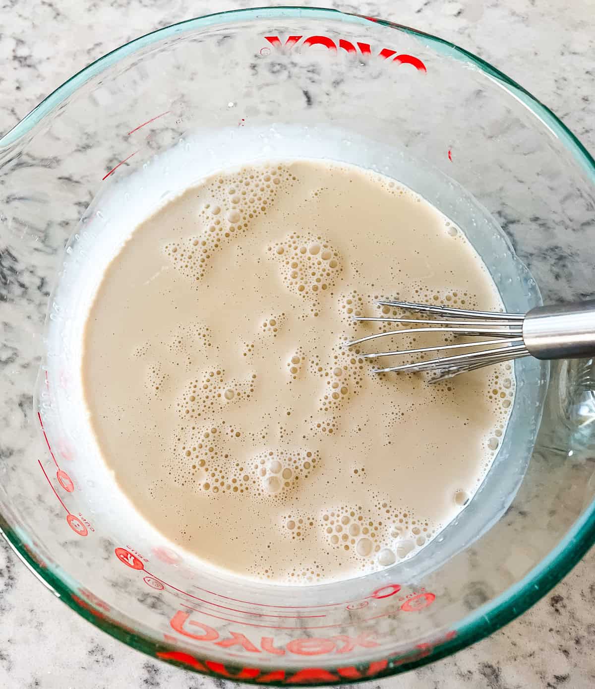 - Whisk together the milk, cream, brown sugar, corn syrup, salt, and vanilla. Place in the freezer for an hour until it is very cold. (Or chill it in the fridge for 3 -4 hours.)