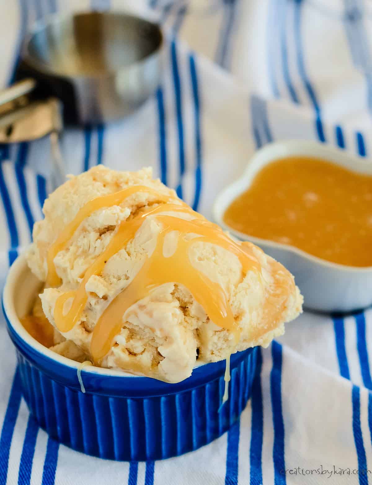 - Place the ice cream in the freezer for 4-6 hours, or until it is firm enough to scoop. Serve with the caramel sauce on the side.