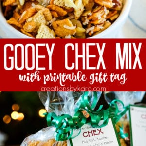 You can’t hand out gifts without a cute tag, so I whipped one up that works not only for this recipe, but for any Chex mix you want to hand out!