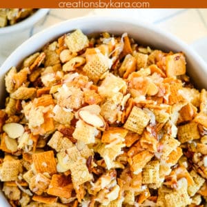 - For a more caramel-flavored snack mix, use light brown sugar in place of all or part of the white sugar.