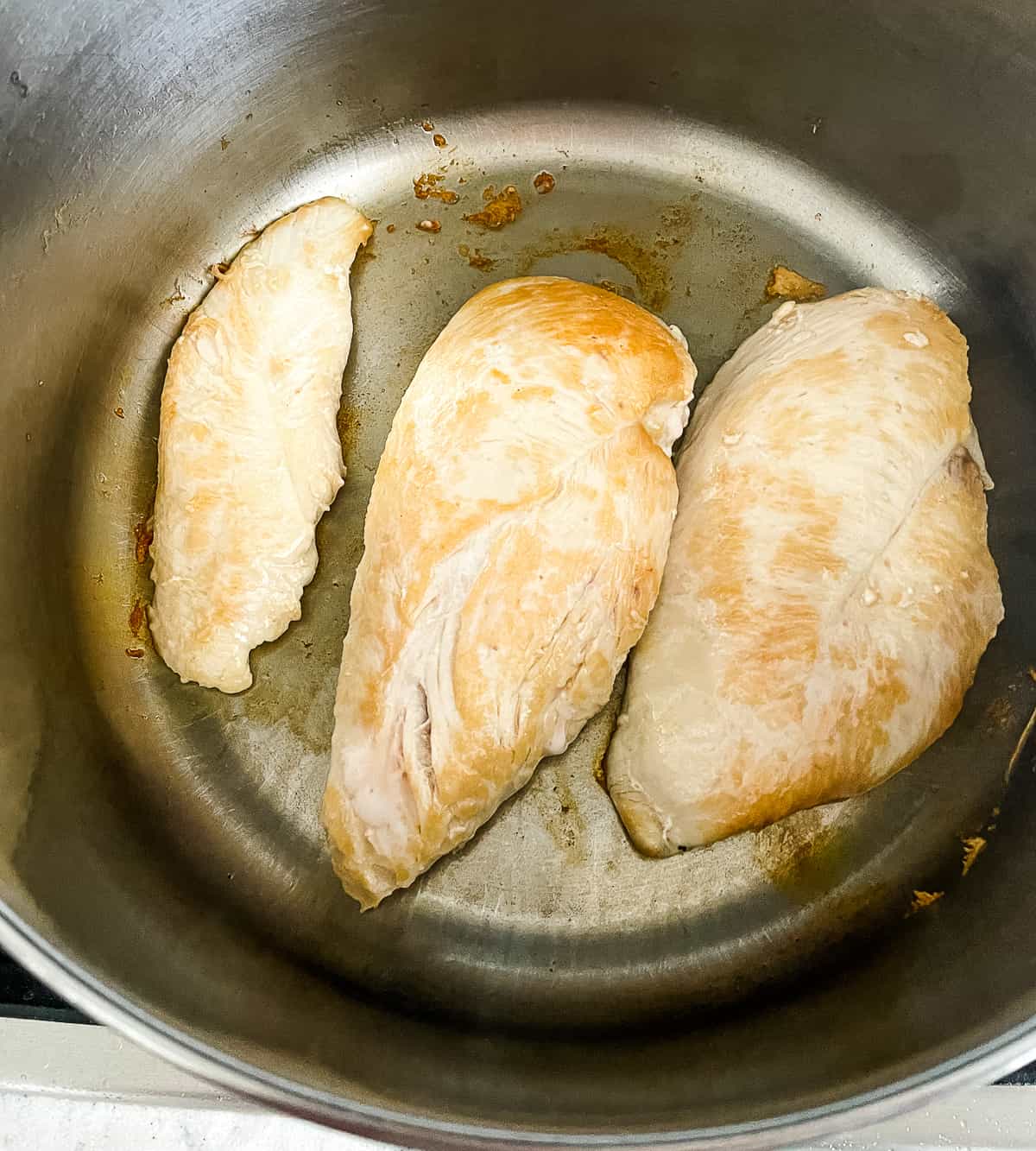 - CHICKEN – In a large soup pot, heat the oil over medium high heat. Cook the chicken breasts until brown on both sides. (This only takes 2-3 minutes on each side if your pan is hot. You don’t need to cook all the way through.)